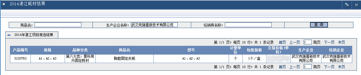 【2014年湛江醫(yī)用耗材集中采購(gòu)候選結(jié)果展示】武漢克瑞普新技術(shù)有限公司生產(chǎn)的胸腔固定夾板(規(guī)格A1/A2/A3)胸骨骨科耗材在2014年度湛江集中采購(gòu)項(xiàng)目中成功審核通過,我們的拿貨價(jià)格優(yōu)惠力度大對(duì)經(jīng)銷商拿貨要求門檻低,是眾多骨科耗材經(jīng)銷商可以視為拿貨標(biāo)準(zhǔn)的企業(yè)。